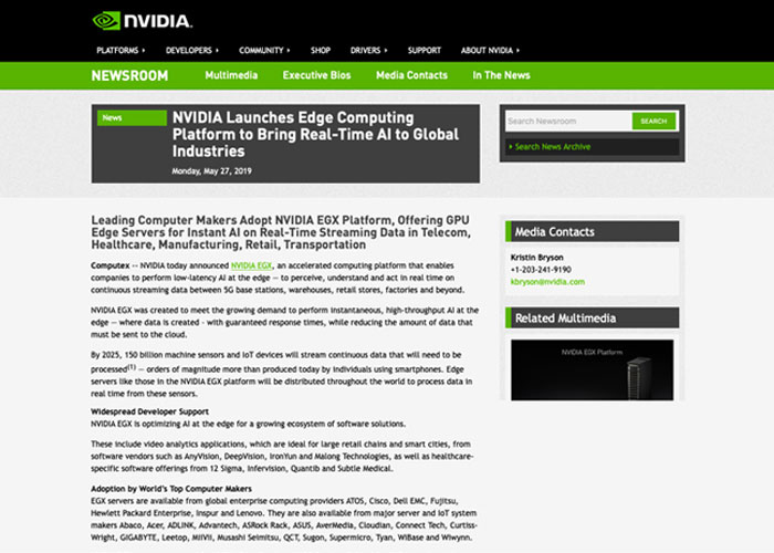 NVIDIA EGX邊緣計算平臺先行者